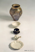 角谷先生は、豊かな自然を求めて名張に移り住まれ、 四半世紀を過されました。 多くの人々とつながり、その喜びを作陶に・・・・ それは生きる実感の日々と確信されています。 いつも凛とした佇まいの器作りを常に心掛けつつも、 その中に日本人の優しさを感じてもらいたい、と作品作りに励んでおられます。 久々の地元の個展です。どうぞ、お楽しみ下さいませ。 |