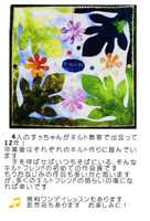 4人のすぅちゃんがキルト教室で出会って12年! 卒業後はそれぞれのキルト作りに励んでいます。 手を伸ばせばいつもそばにいる、そんなキルトフレンドの初めての作品展です。 もうおなじみの作品も多いかと思いますが、多くのキルトフレンドの語らいの場になれば幸いです。 ♪ 無料ワンデイレッスンもあります。即売会もあります。お楽しみに! |