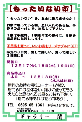 | ギャラリー閑では現代作家の個展・グループ展等を年2〜3回開催の他、感謝市等の当店企画展も予定しております。 |